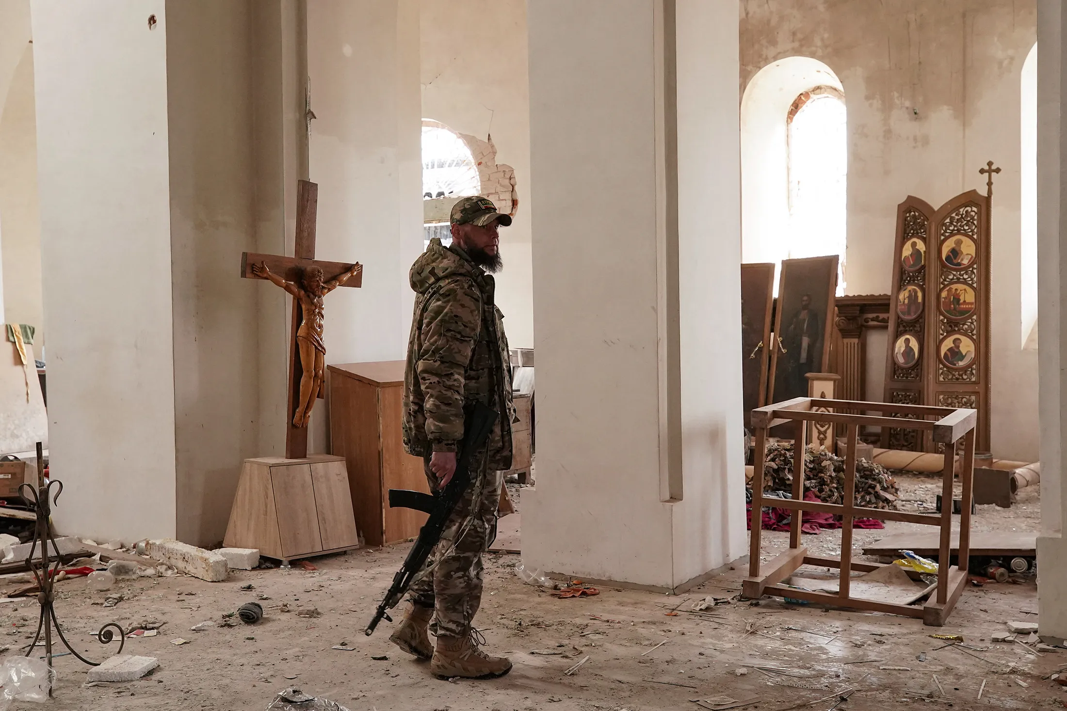 3月18日,一名俄羅斯士兵走在庫爾斯克地區一座被損毀的東正教教堂內,該村莊此前由烏克蘭軍隊控制,最近被俄羅斯武裝力量奪回。攝影師:塔季揚娜·馬克耶娃/法新社/蓋蒂圖片社據熟悉美國立場的人士透露,儘管普京在談判中提出了廣泛的要求,但特朗普明白,任何協議都必須得到基輔的認可才能成功,因此不準備做出過多讓步。他們表示,美國也不會同意在達成持久停火協議之前舉行峯會。