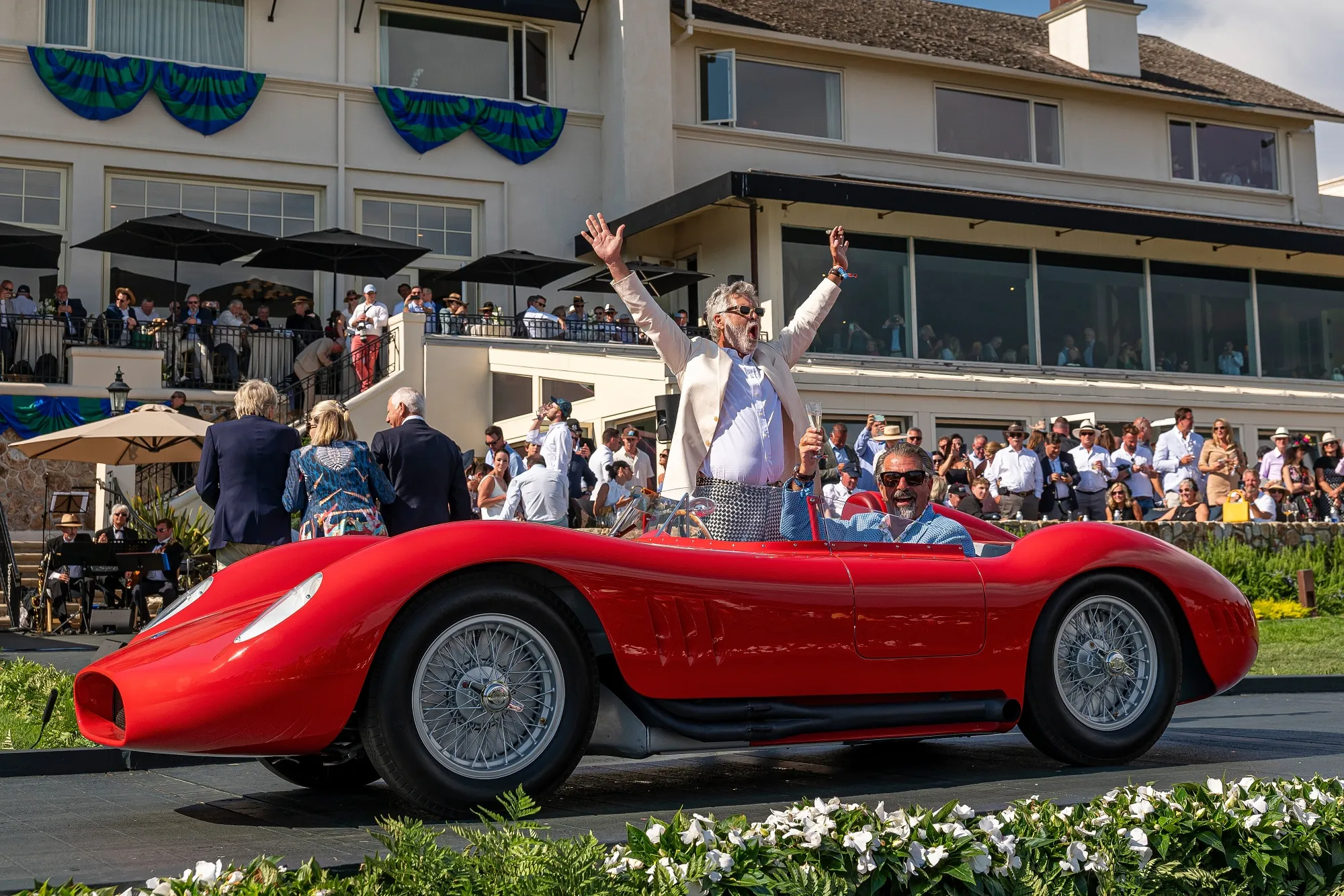 2023年加州卡梅爾圓石灘車展期間,RM蘇富比拍賣會成為焦點。圖中1957年瑪莎拉蒂200SI Fantuzzi Spyder正駛過主展台。攝影師:David Paul Morris/彭博社 談談拍賣疲勞吧。如今持續銷售和幾乎不間斷的線上拍賣盛行,是否過於氾濫?