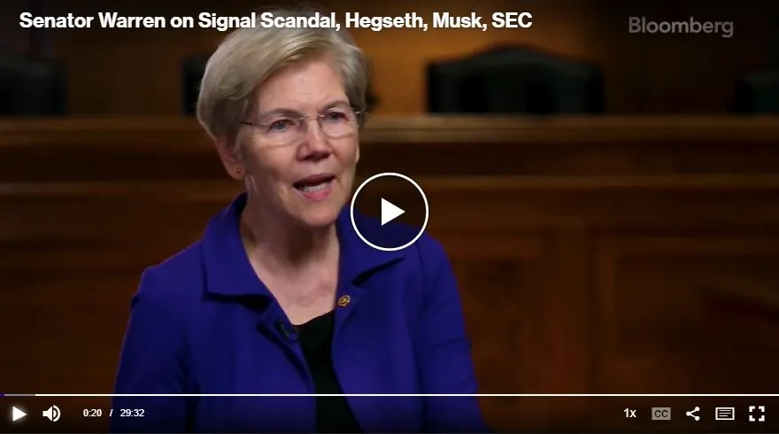 參議員伊麗莎白·沃倫表示特朗普正在主張擴大權力,並警告稱他可能解僱美聯儲主席傑羅姆·鮑威爾,作為她所稱可能擾亂美國市場的人員清洗行動的一部分。