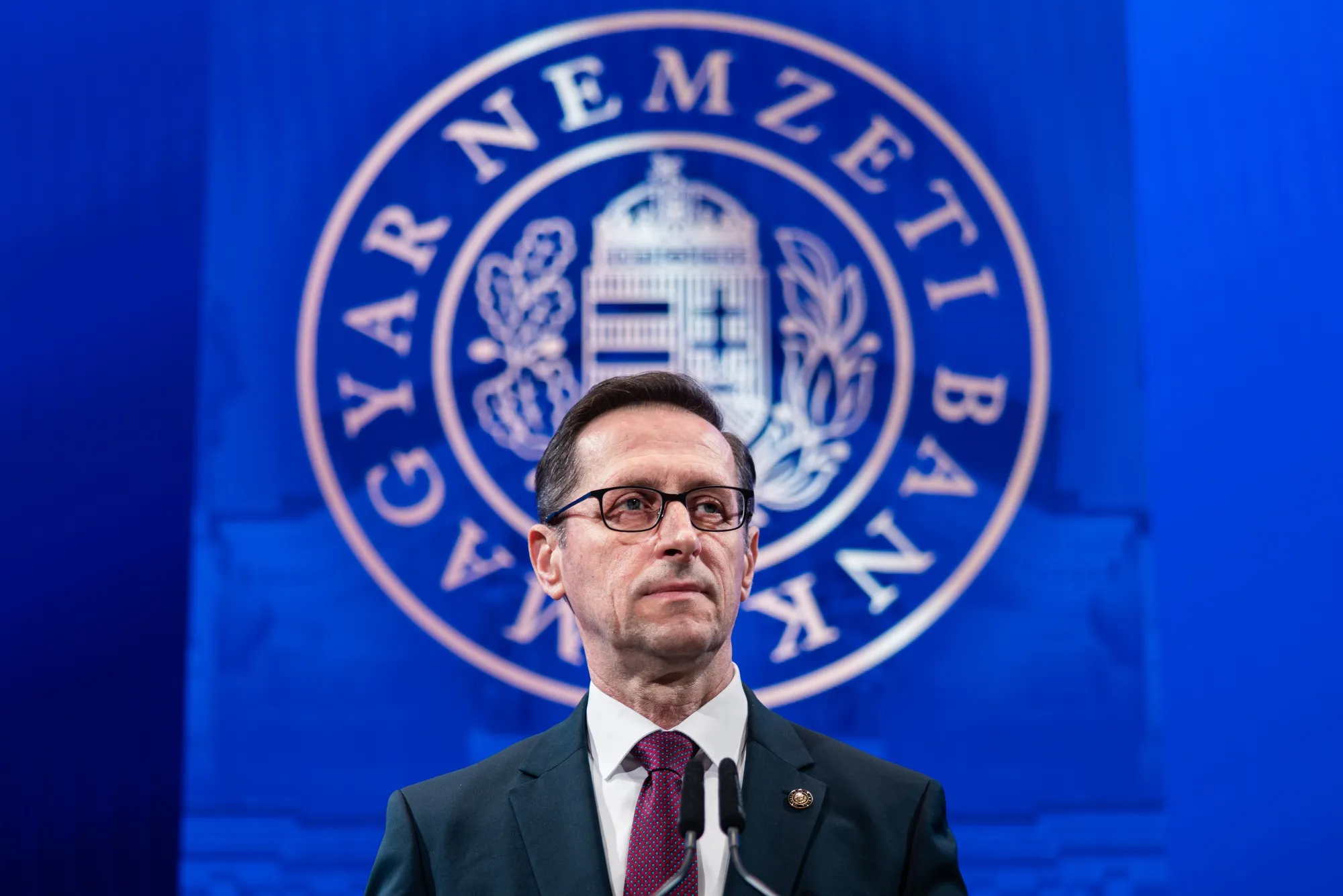 3月25日匈牙利利率決議後,米哈伊·瓦爾加在新聞發佈會上。攝影師:阿科斯·斯蒂勒/彭博社瓦爾加於3月4日接替執掌匈牙利國家銀行12年的捷爾吉·馬托爾奇。目前沒有證據表明馬托爾奇存在不當行為,國家審計署也未點名基金會虧損的具體責任人。