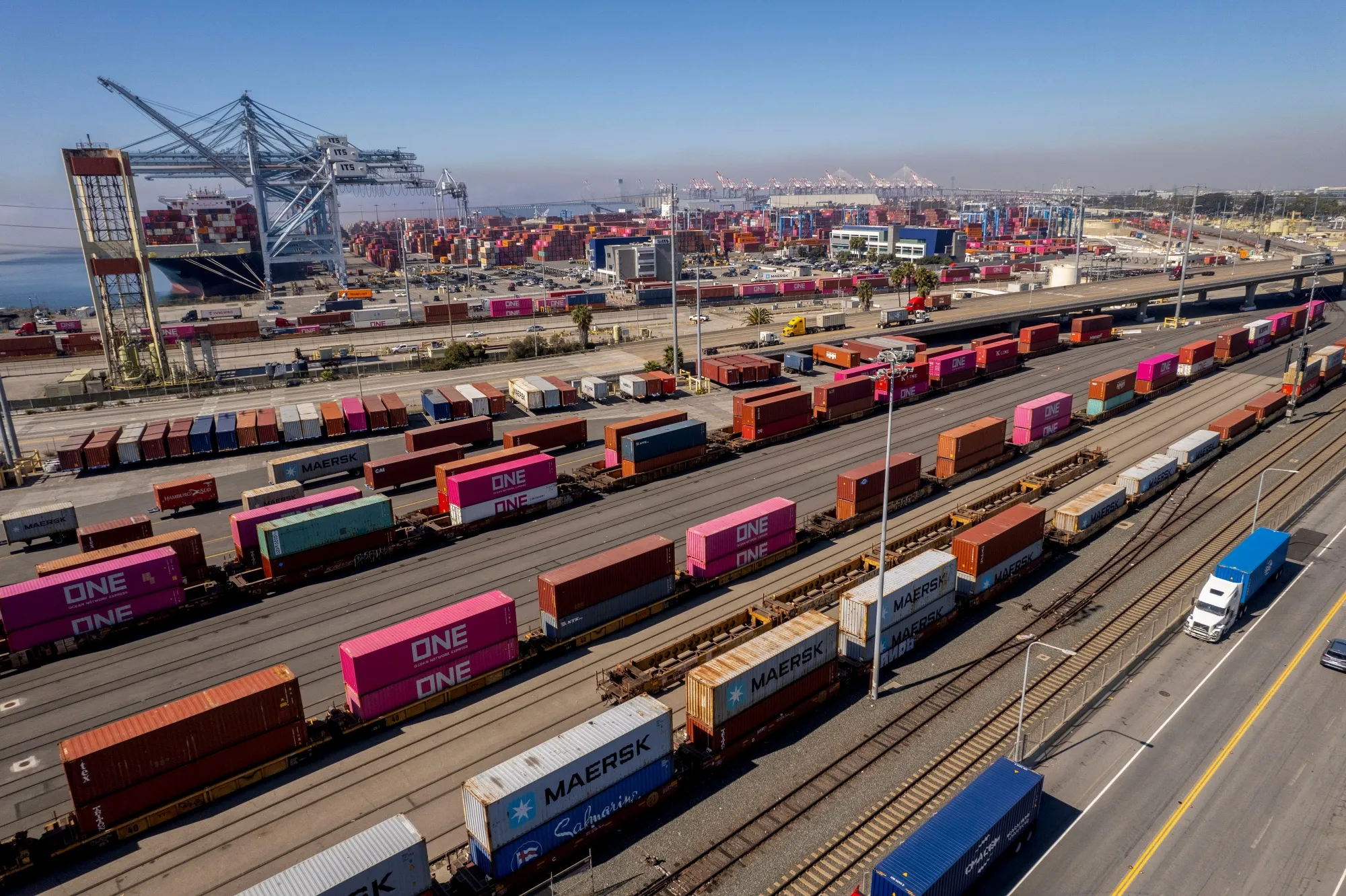 美國加利福尼亞州長灘港的貨運集裝箱。