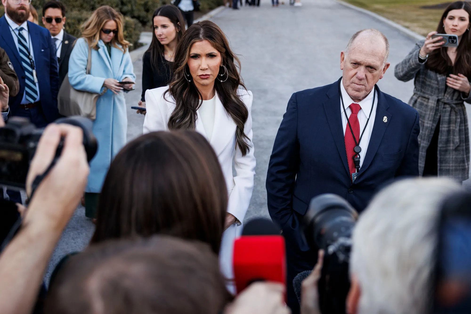 1月29日,克里斯蒂·諾姆(中)在白宮外。攝影師:塞繆爾·科魯姆/Sipa/彭博社正是薩拉比亞對總統議程的控制激怒了他政治運動中的一些人。前農業部長塞西莉亞·洛佩斯抱怨説,她無法與上司會面,並補充説,薩拉比亞甚至承擔了他的一些職能,比如任命和罷免官員。“佩特羅將政府的管理權委託給了她,”洛佩斯在一次採訪中説。