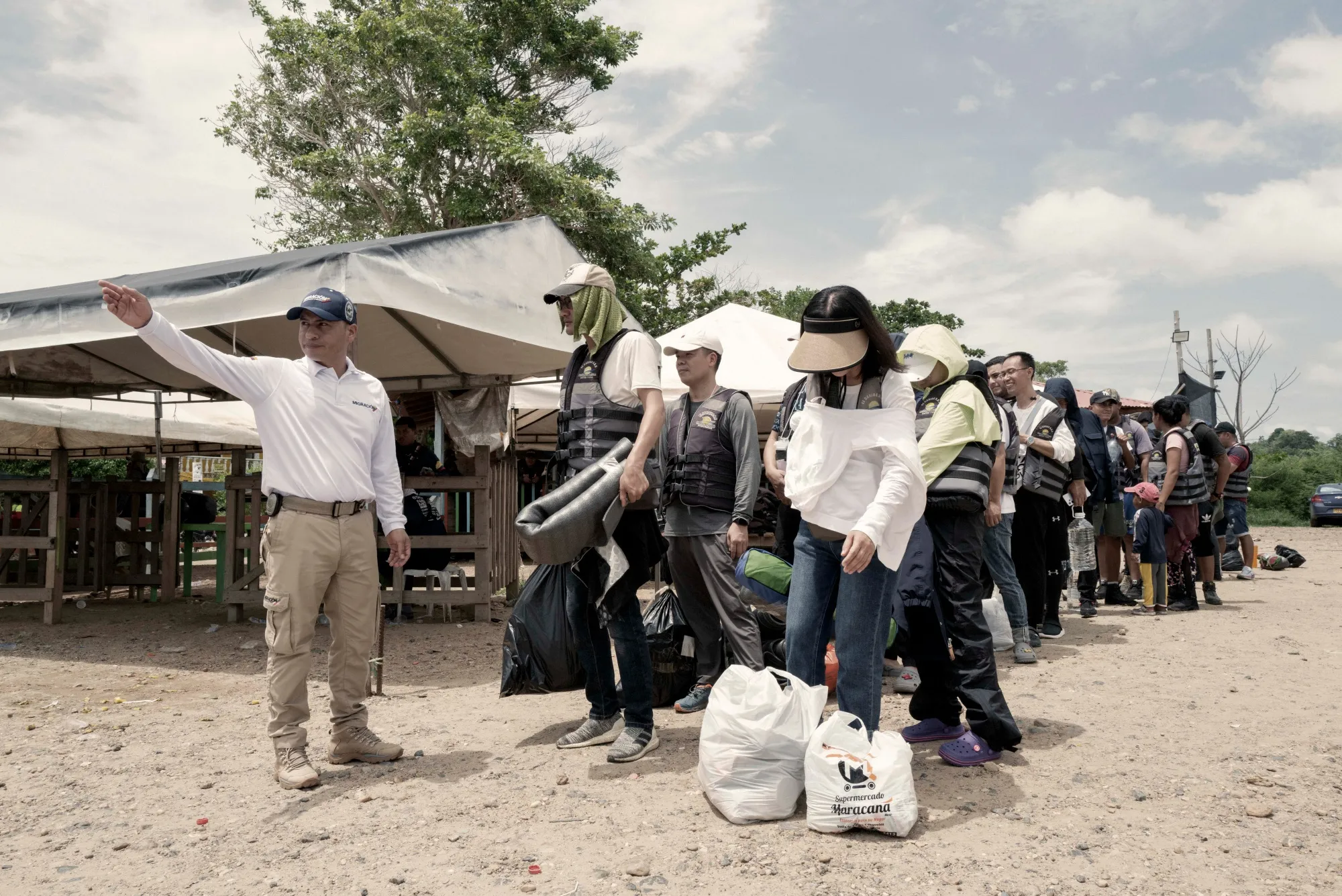 2023年,移民們在哥倫比亞安蒂奧基亞省內科克利等待登船。攝影師:尼科洛·菲利波·羅索/彭博社她被任命為外長僅一週後,佩特羅在一個週日的清晨通過社交媒體發文談及移民待遇問題,激怒了特朗普,這時她此前職位上建立的人脈派上了用場。作為回應,這位美國總統對哥倫比亞發起猛烈反擊,施加25%的關税,引發該國商業和政治精英的恐慌,因為哥倫比亞近三分之一的出口都流向其在該地區的主要盟友。