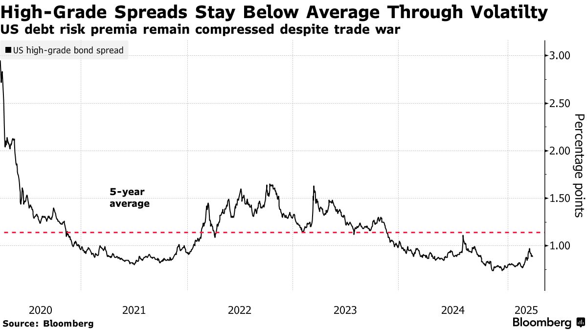 該公司全球投資級企業信貸主管麗莎·科爾曼表示:“當前市場的不確定性風險要求我們獲得略高的回報。關税政策極不明朗,因此我們無法真正排除經濟衰退的可能性。”
