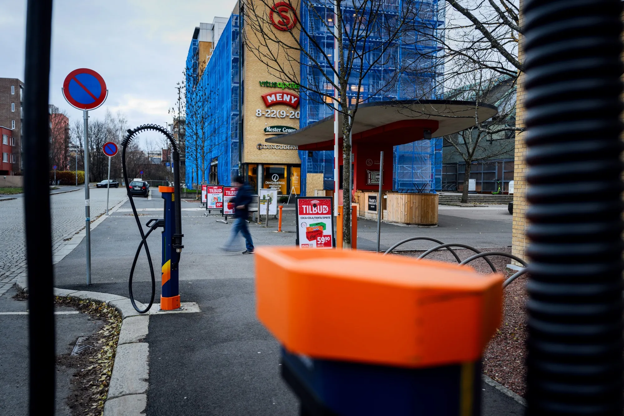 在奧斯陸郊外高速公路休息站Uno-X Furuset,四台燃油加註機已縮減為三台。曾經矗立着油泵的水泥基座正靜候新設備入駐——極有可能是一台電動車充電樁。