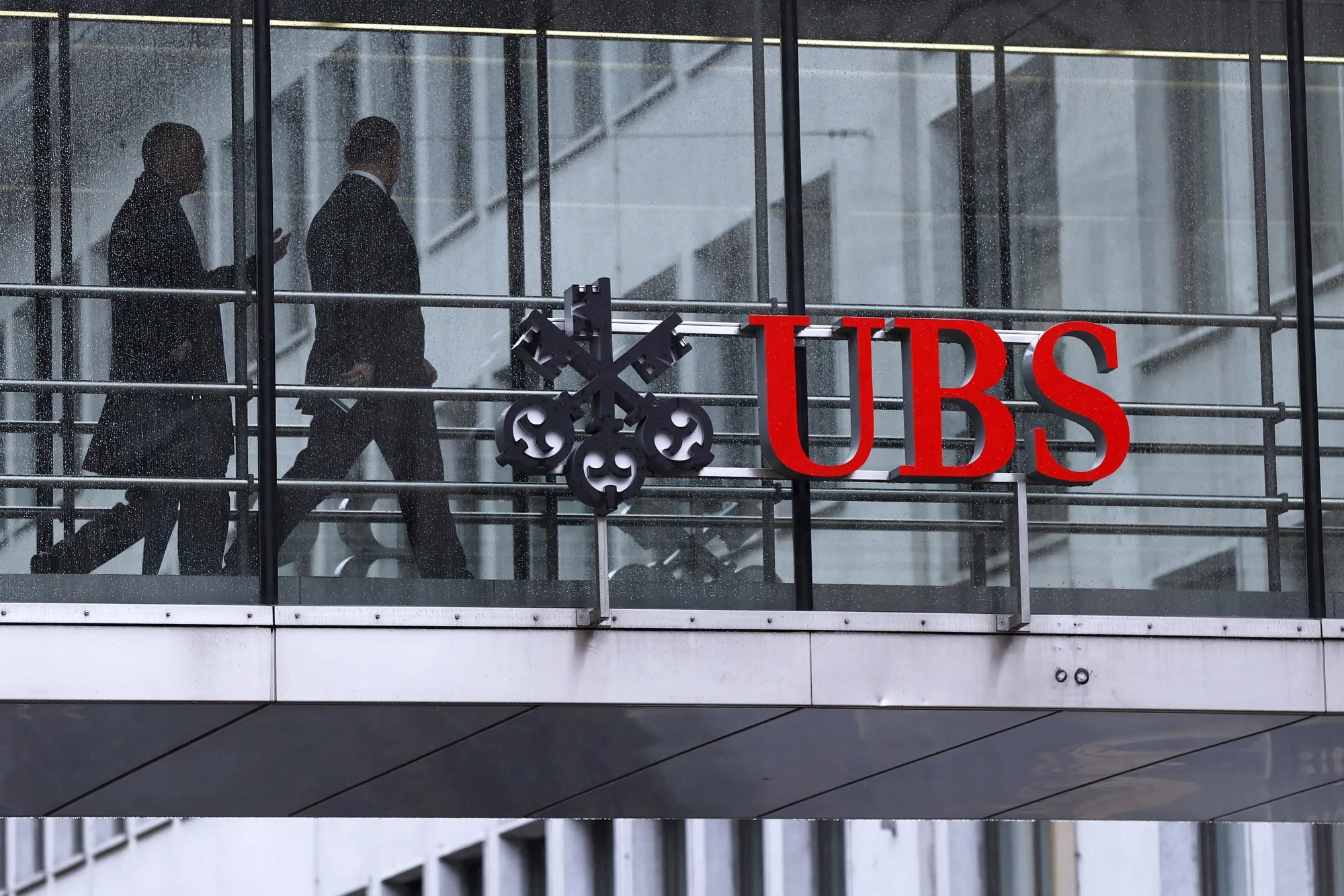2018年1月22日星期一,瑞士蘇黎世瑞銀集團總部,員工穿梭於辦公區域間,人行道上印有瑞銀集團標識。
