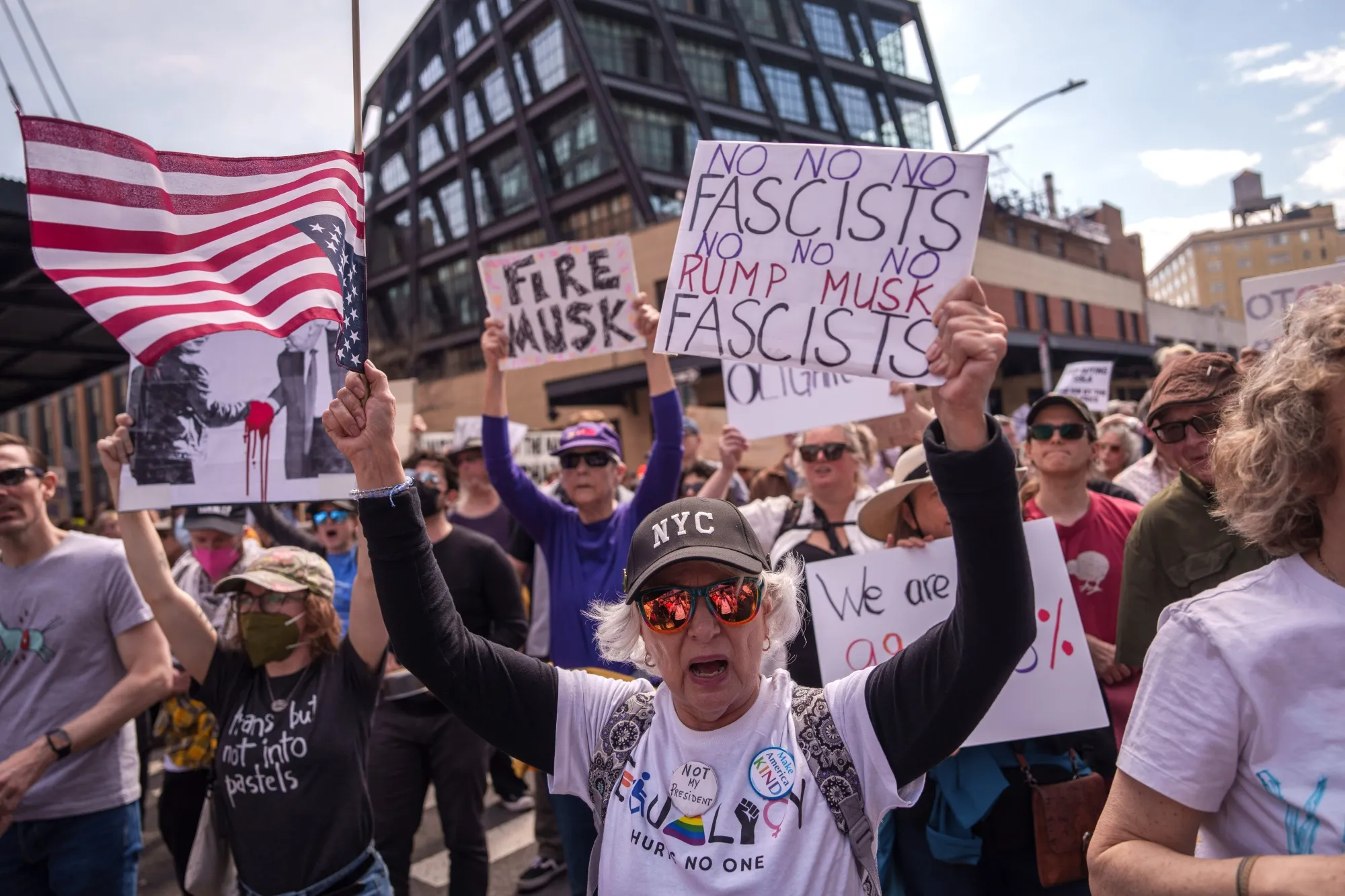 截至下午早些時候,從幾十人到數百人不等的抗議人羣湧向新澤西州、馬薩諸塞州、康涅狄格州、紐約州、馬里蘭州、明尼蘇達州以及該汽車製造商總部所在地得克薩斯州的特斯拉門店。社交媒體上發佈的圖片顯示,抗議者揮舞着諸如"討厭埃隆就按喇叭“和”反抗億萬富翁兄弟會“等標語。