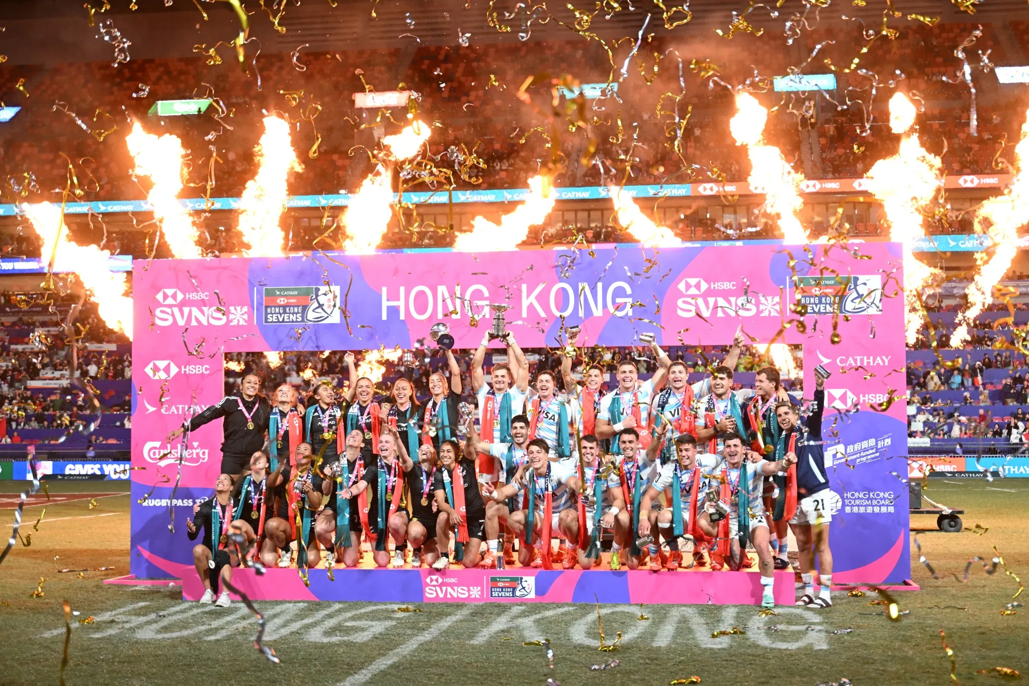 3月30日,新西蘭女子隊和阿根廷男子隊在啓德體育場贏得盃賽決賽後慶祝勝利。攝影師:Peter Parks/AFP/Getty Images儘管存在餐飲問題,賽事總體運行平穩——雖然週六因排隊入場的沮喪球迷試圖強行衝卡,主辦方臨時關閉了南看台入口。阿根廷隊在男子組決賽中以12-7戰勝奧運冠軍法國隊奪冠,新西蘭女隊則以26-19擊敗澳大利亞隊。本屆賽事期間不僅有DJPete Tong和英國樂隊Kaiser Chiefs的表演,最後還上演了煙花秀。