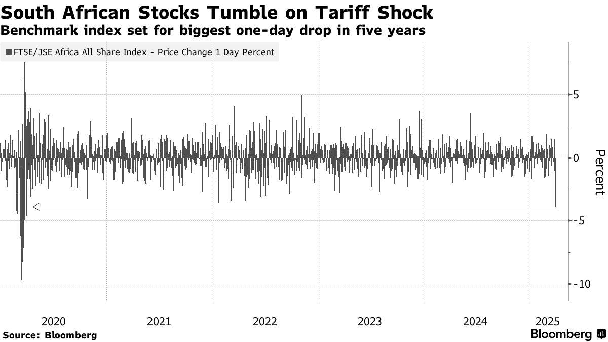 南非股市創五年最大跌幅 受特朗普關税衝擊影響——彭博社
