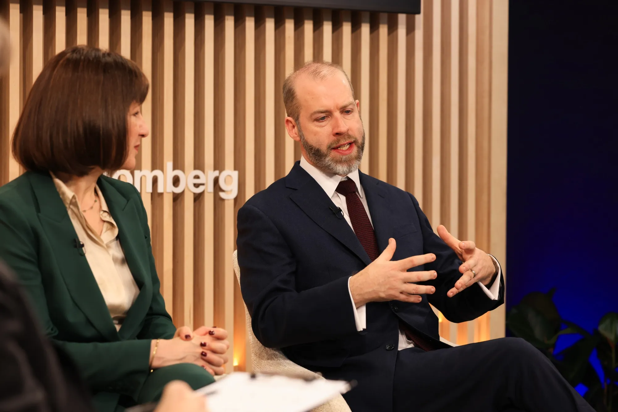 2025年1月,英國商業大臣喬納森·雷諾茲(右)與財政大臣瑞秋·裏夫斯(左)出席彭博活動