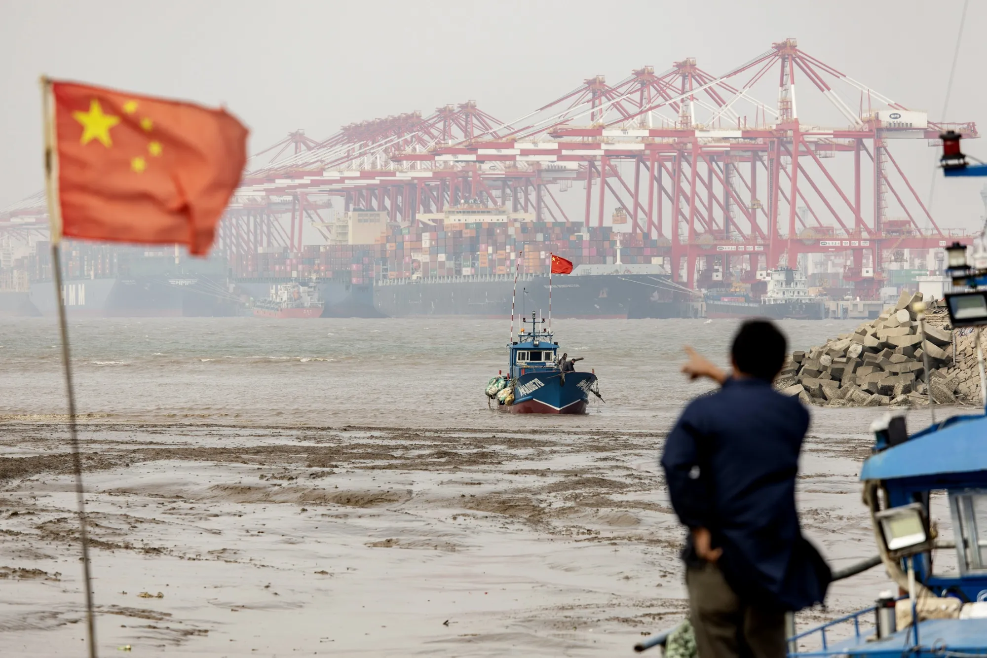 上海洋山深水港。攝影:沈開來/彭博社在中國宣佈對全部美國進口商品加徵關税以報復美國新關税措施後,美國股指期貨在週五早盤交易中進一步下跌。