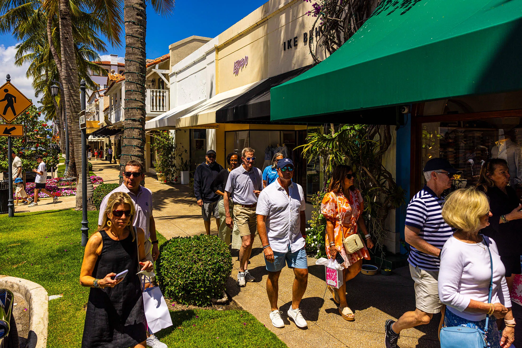 購物者走過沃思大道上的奢侈品店。攝影師:索爾·馬丁內斯/彭博社"市場崩盤和關税是主要話題——棕櫚灘的每個人都持有投資組合——但這並沒有影響慶祝活動,“他説道,並補充人們也談論了各自的高爾夫和網球比賽。