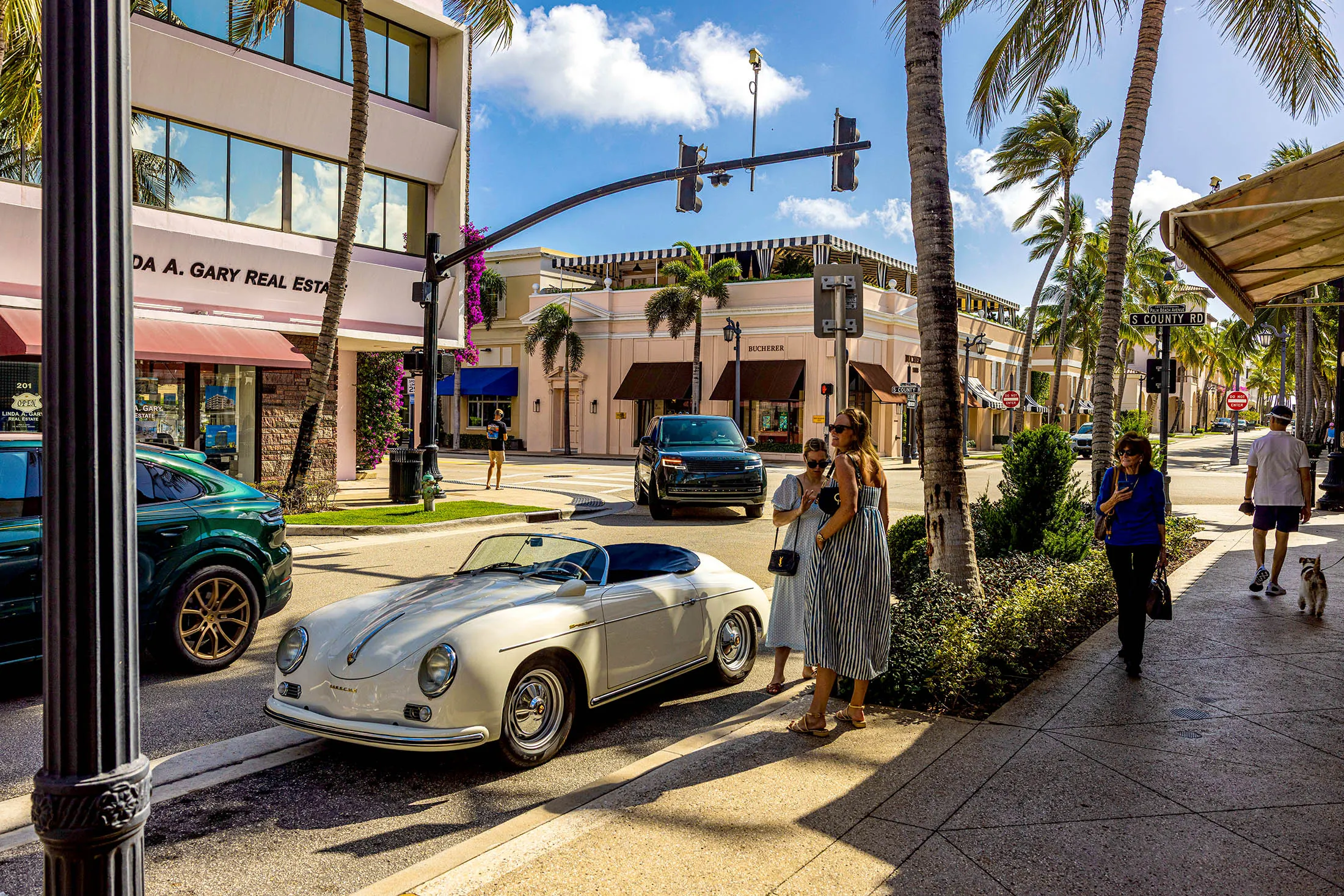 擁有約9000名常住居民的棕櫚灘,即便總統在此度週末且正值學校春假期間,仍顯得寧靜。在棕櫚樹成行的沃思大道上,身着熨燙亞麻服飾的女性和穿着 polo 衫與淺色長褲的男士走過奢侈品店,門縫間飄出混合着茉莉與檀香的清涼空氣。
