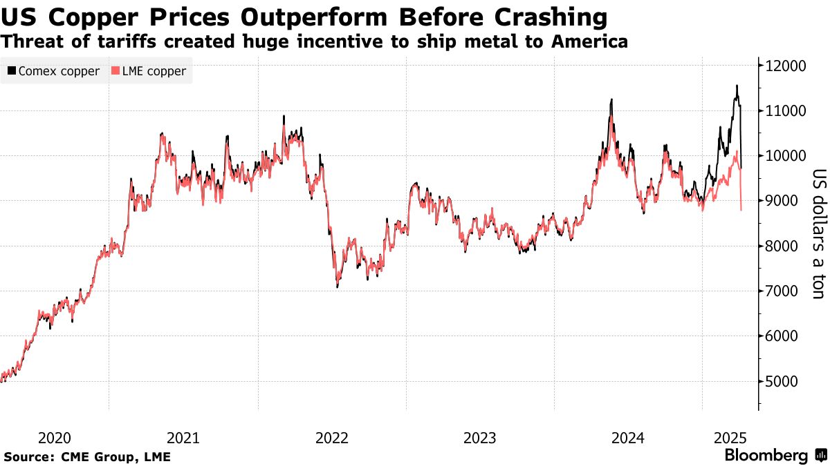 銅價牛市變暴跌 關税現實打擊顯現 - 彭博社