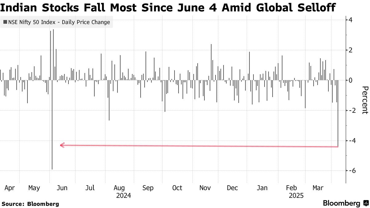 就在印度股市剛剛站穩腳跟之際,全球企業和市場對貿易政策的極度不確定性令其再度動盪。這還可能加速全球基金的拋售,這些基金今年已從印度股市撤資140億美元。Nifty 50指數在3月份上漲了6%,創下自6月以來的最佳月度表現。