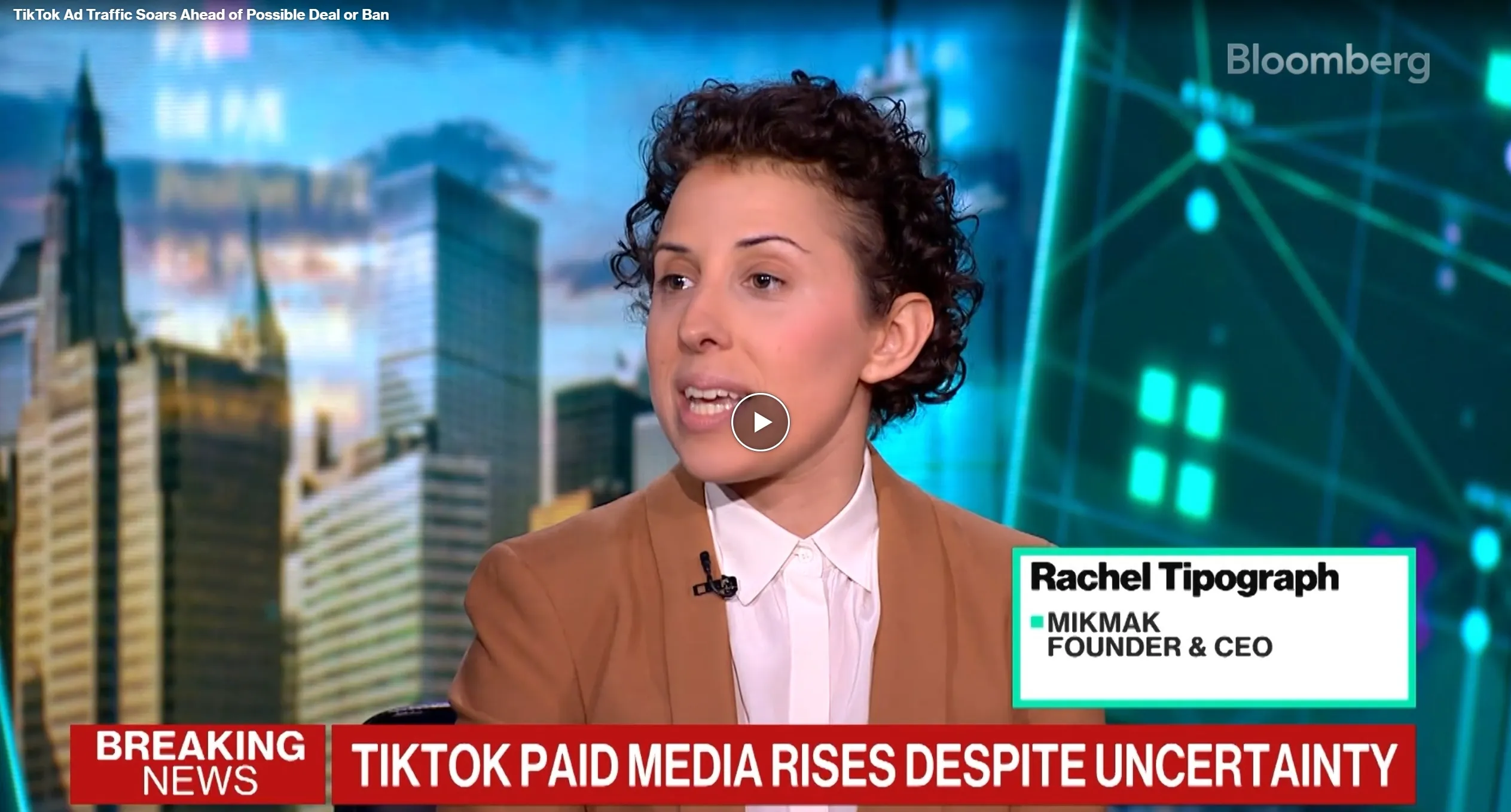 MikMak首席執行官Rachel Tipograph做客彭博科技節目,討論在平台封禁最後期限過後廣告商們爭相迴歸TikTok的現象。
