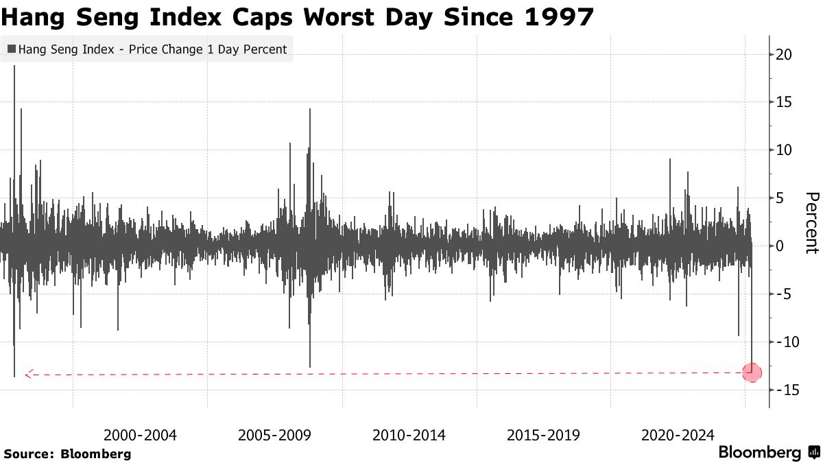 港股因美中關税戰擔憂創1997年以來最大單日跌幅——彭博社
