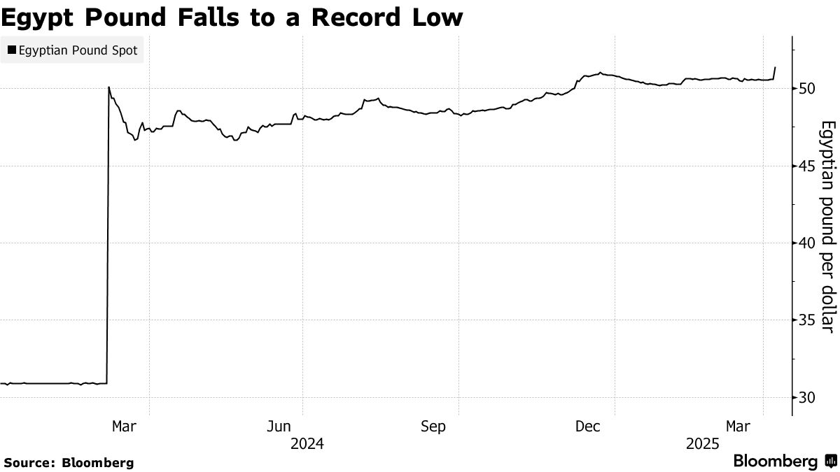 埃及貨幣創下去年貶值以來最大跌幅,在美國總統特朗普關税政策衝擊全球市場之際跌至歷史新低。