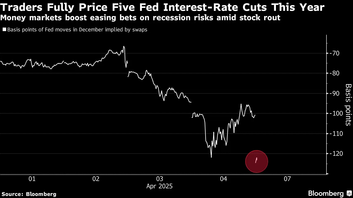 隨着美國關税政策引發對全球衰退的擔憂,交易員們提高了對美聯儲今年降息的預期,並認為央行在下次會議前就可能採取行動。