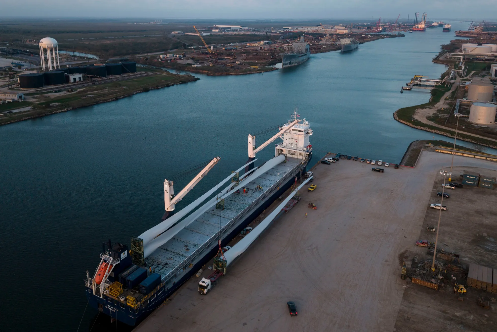 德克薩斯州布朗斯維爾港貨輪上的風力渦輪機部件。