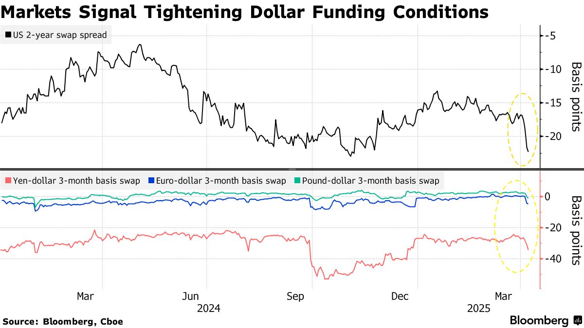 隨着美國總統特朗普的關税政策導致投資者大規模拋售美國資產,投資者正在美元融資市場中搜尋市場紊亂的跡象。