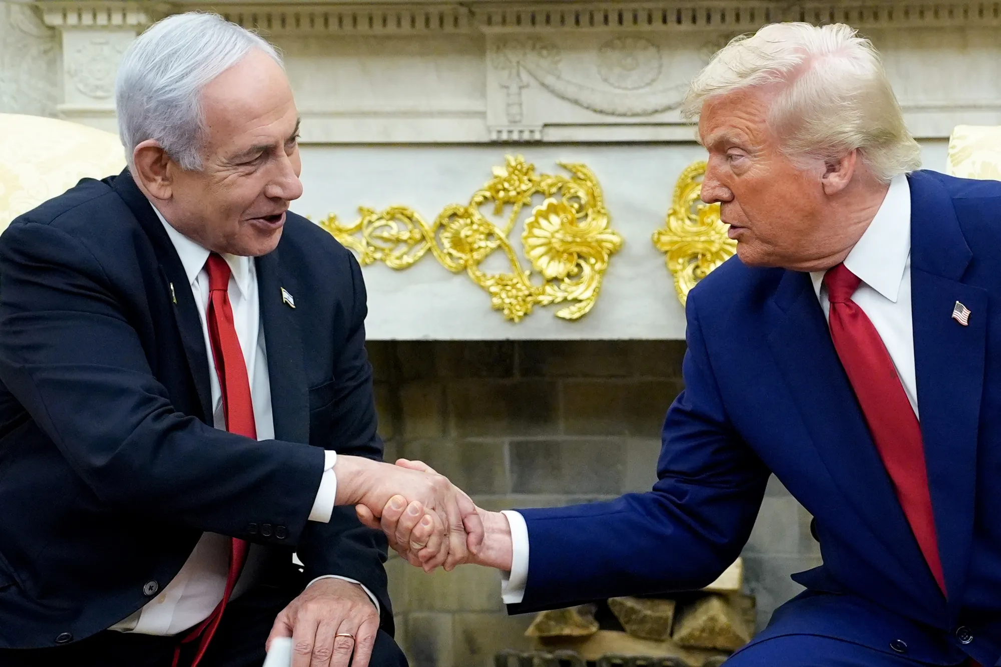 4月7日,唐納德·特朗普(右)與本雅明·內塔尼亞胡在白宮橢圓形辦公室舉行雙邊會談。攝影師:尤里·格里帕斯/阿巴卡/彭博社特朗普補充説,其政府將批准的預算“將是我們為軍隊制定的史上最大規模”。