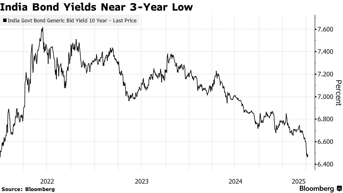 當全球市場因美國全面關税陷入動盪之際,印度債券市場似乎將迎來持續上漲。印度儲備銀行持續注入流動性,已將基準收益率推至近三年低點。這一勢頭遠未結束。由於市場普遍預期央行將於週三降息,國債高管預計未來幾周10年期收益率將下降超過20個基點至6.25%。這對尋求融資的企業是個好兆頭,因為公司債券定價與主權債券密切相關。