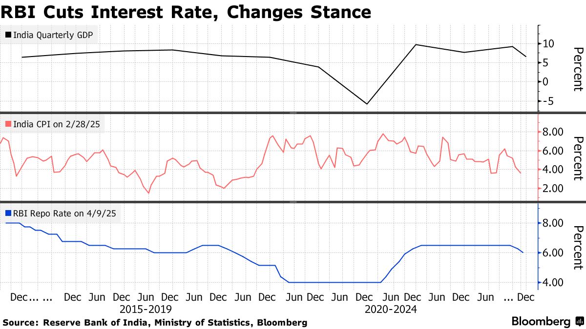 由行長桑傑·馬爾霍特拉領導的印度儲備銀行六人貨幣政策委員會一致投票決定將回購利率下調25個基點至6%。彭博調查的39位經濟學家中多數預測了這一舉措。