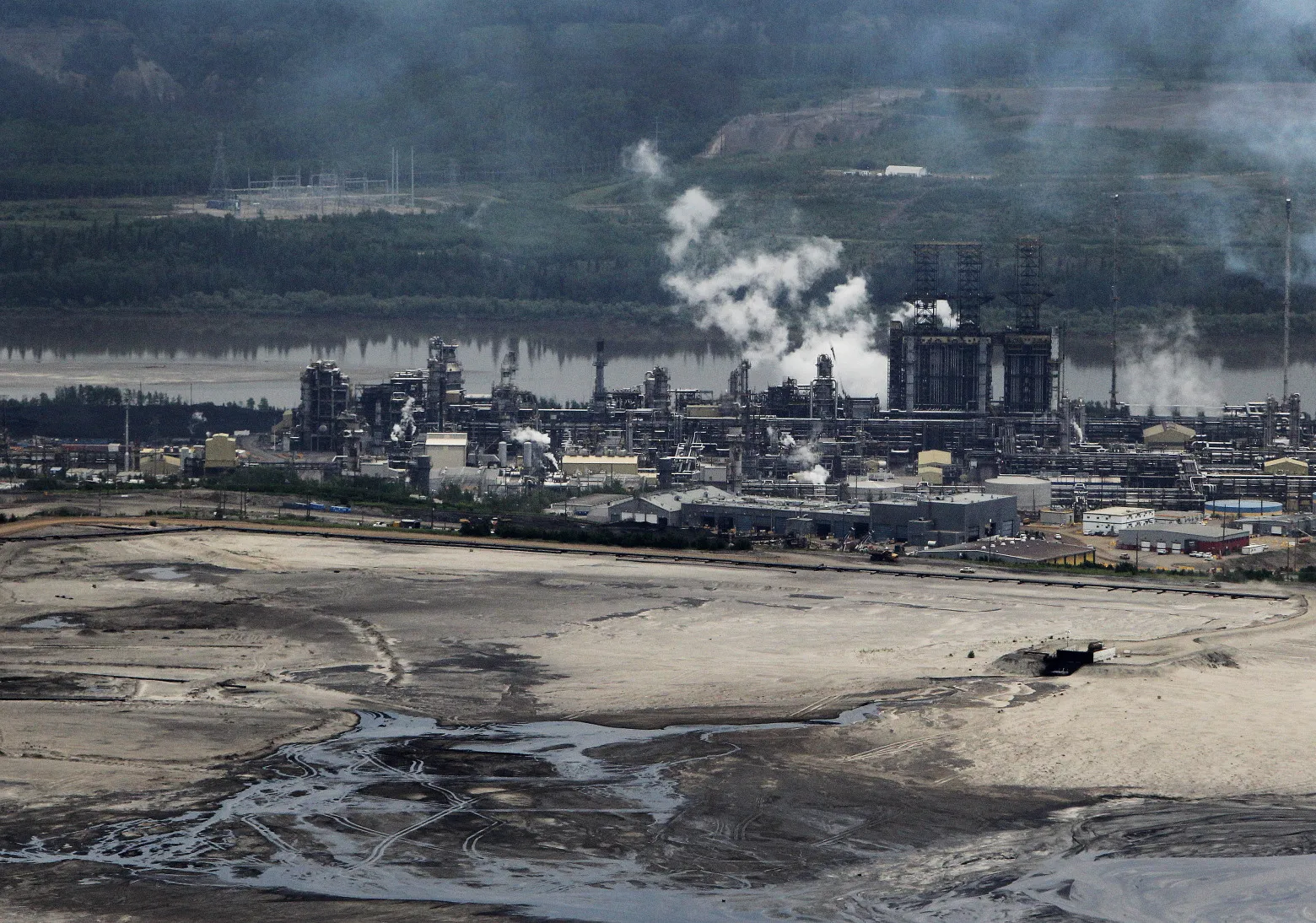 2014年阿爾伯塔省麥克默裏堡附近的森科爾能源基地工廠。攝影師:本·內爾姆斯/彭博社波利耶夫爾還承諾推行多項威脅減排進程的措施,包括取消加拿大油氣排放上限、廢除工業碳税。後者是大型能源公司所呼籲的,他們認為該税制缺乏全球成本競爭力,且碳監管更適合省級層面實施。