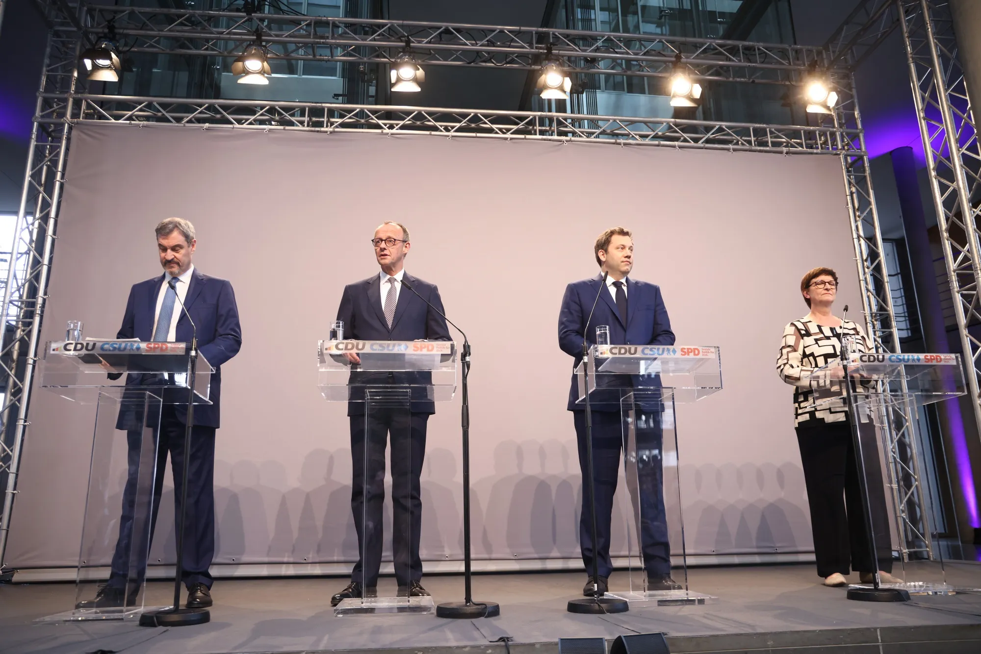 從左至右依次為:4月9日在柏林的馬庫斯·索德爾、弗里德里希·默茨、拉爾斯·克林拜爾和薩斯基亞·埃斯肯。