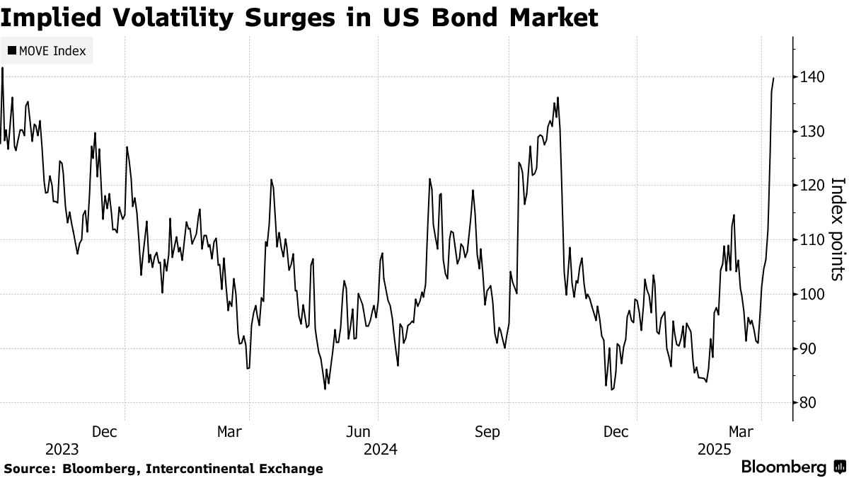 唐納德·特朗普總統的關税規模讓許多人感到意外,目前尚不清楚他何時或是否會妥協。但同樣不確定的是,這些關税將對美國經濟產生什麼影響。如果它們引發經濟衰退且通脹減弱,美聯儲可能會降息,這通常會增加國債的吸引力。但令人擔憂的是,關税也會推高價格,限制美聯儲應對增長放緩的能力。這將削弱國債。不確定性意味着波動性可能仍將保持高位。