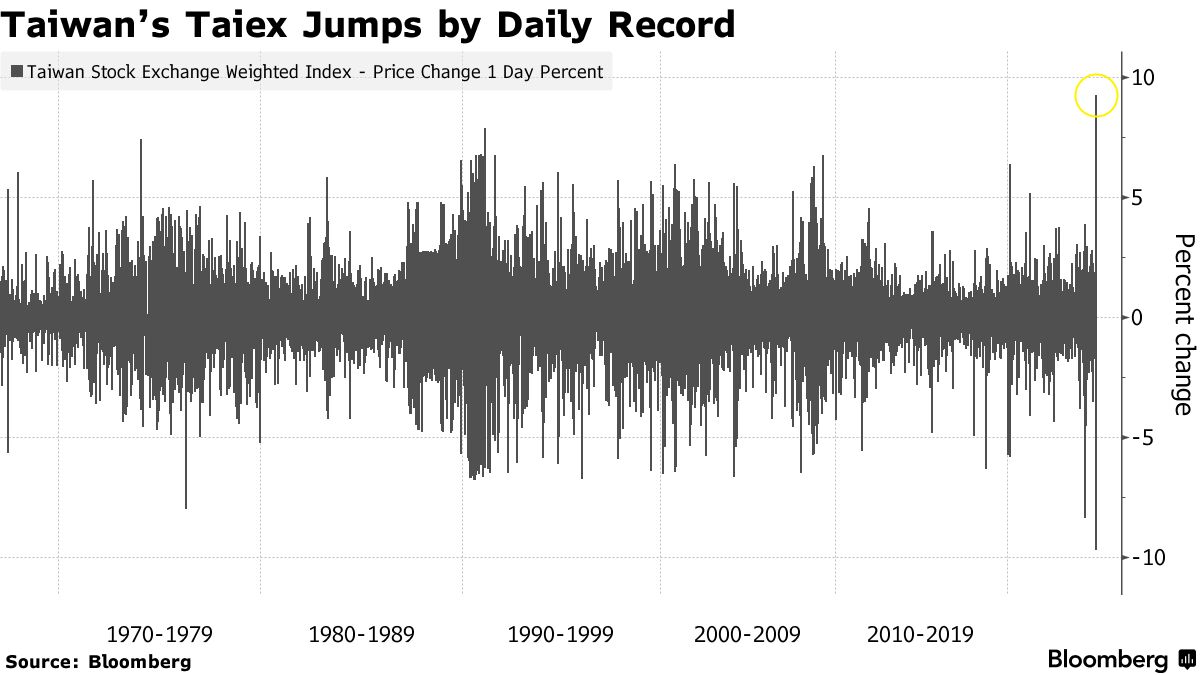台灣股市指標在美國關税暫緩後創紀錄飆升 - 彭博社
