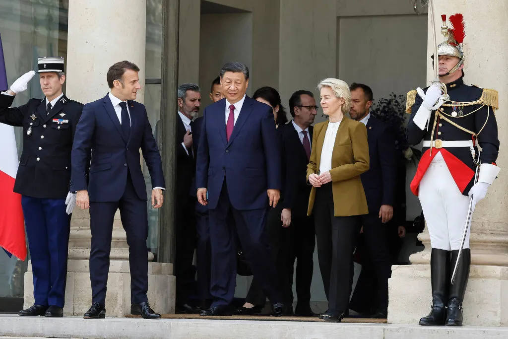 2024年中國國家主席習近平訪問法國期間,埃馬紐埃爾·馬克龍與烏爾蘇拉·馮德萊恩分列左右。