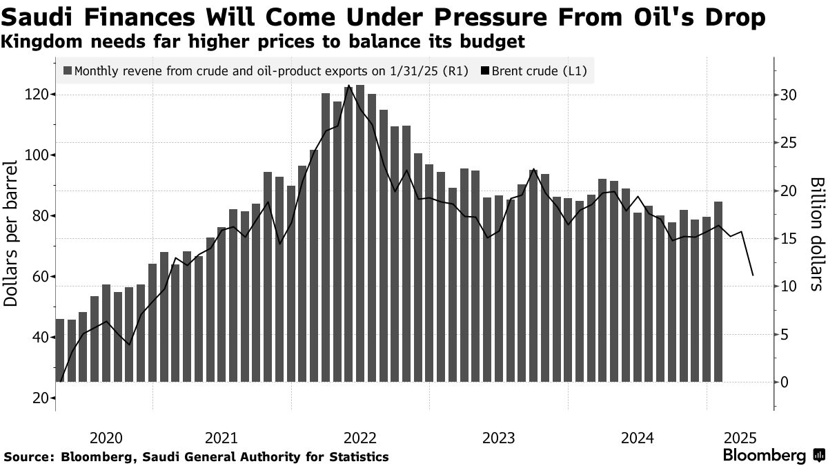 高盛集團獨家向彭博新聞提供的預測數據顯示,該國今年財政赤字可能飆升至670億美元。這遠超政府2024年底制定的基準預測值兩倍以上,或將迫使王儲穆罕默德·本·薩勒曼在國際債券市場增加借貸,並進一步縮減其數萬億美元規模的經濟轉型計劃。
