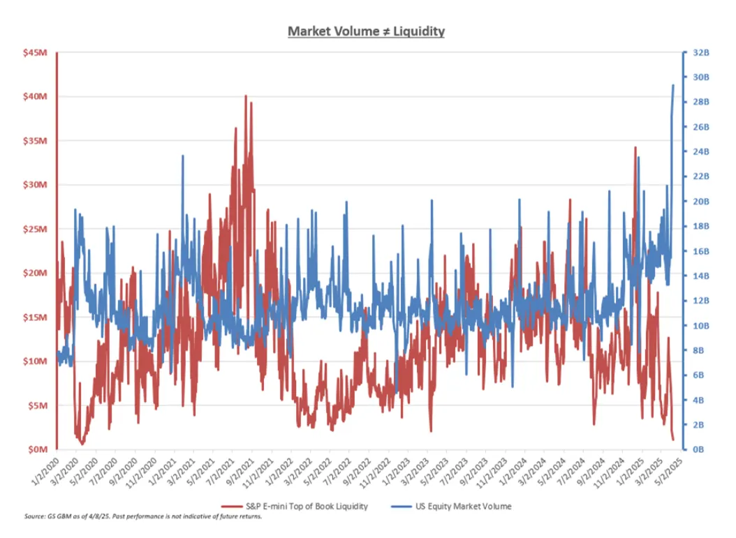 在唐納德·特朗普總統週三暫緩加徵關税後,交易員們爭相回補他們在市場低迷期間積累的空頭頭寸。與此同時,高盛集團主經紀商數據顯示,標普500期貨的賬面流動性(即按屏幕顯示價格可交易的名義金額)處於歷史最低水平,這加劇了市場波動。標普500指數飆升9.5%,創2008年10月以來最大單日漲幅。該基準指數合約在紐約時間凌晨5點下跌2.1%。