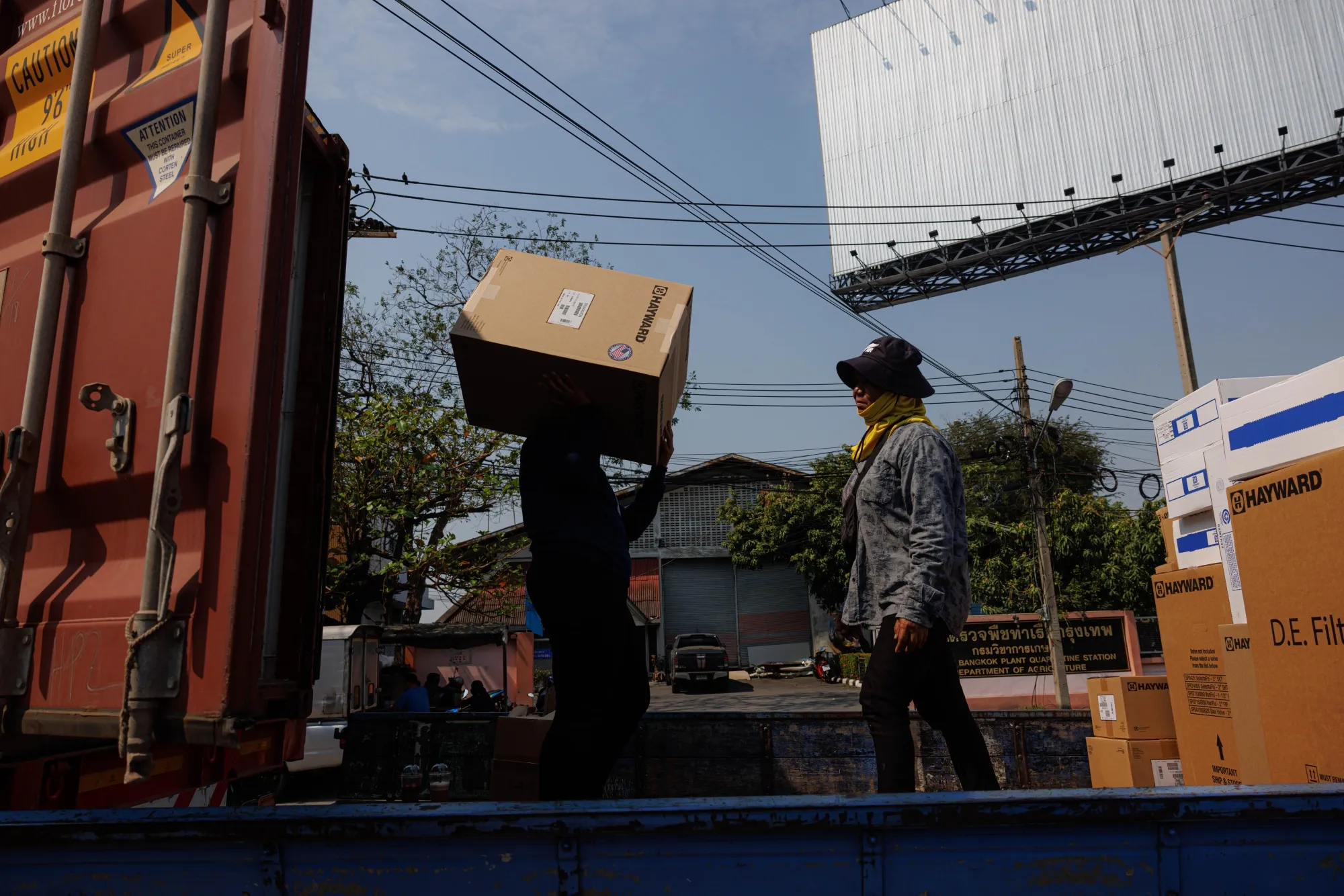 工人們正在曼谷港口附近將貨物從集裝箱搬運到卡車上。攝影師:安德烈·馬萊拉/彭博社泰國官員表示,在與特朗普政府進行關税談判時,將考慮對中國商品加徵高關税的影響,因為當地生產商擔憂來自這個亞洲鄰國的廉價進口商品可能激增的風險。