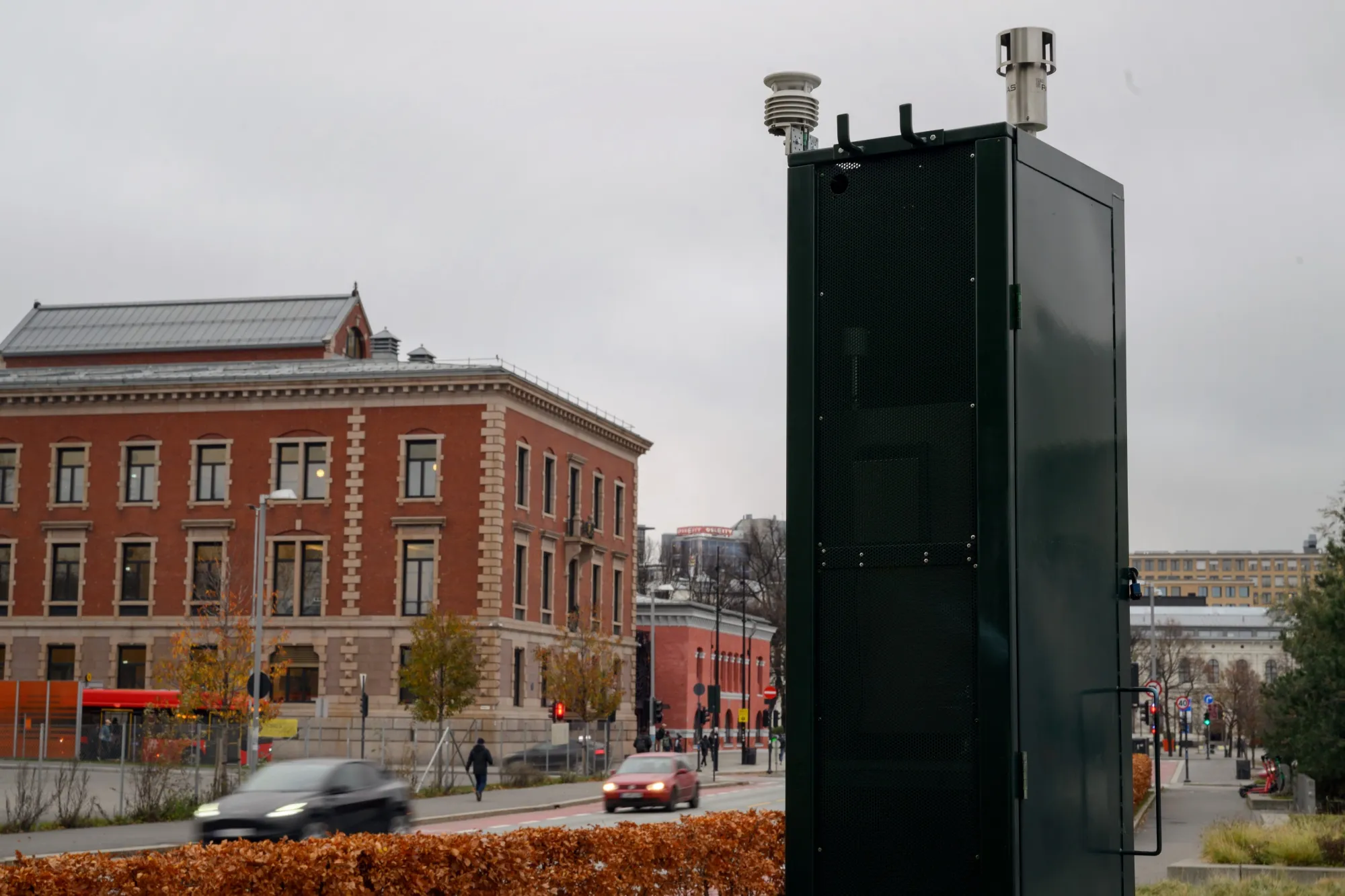 挪威奧斯陸歌劇院附近的空氣質量監測站。近年來這座城市的長期霧霾有所改善,但問題尚未消失。