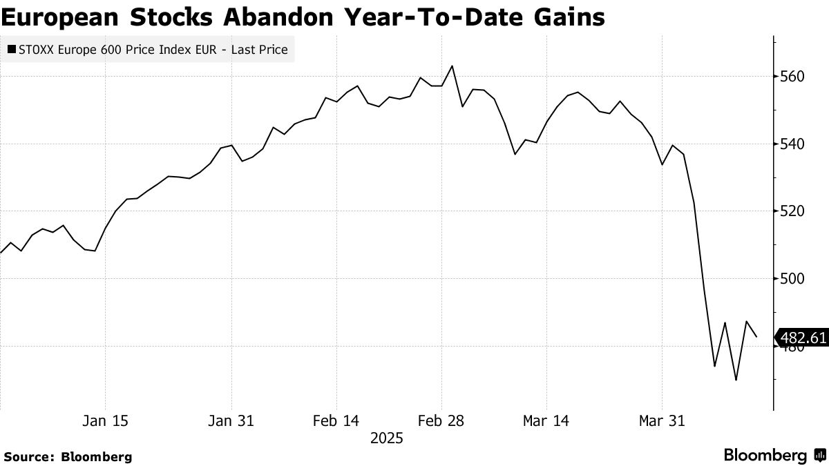 自特朗普上週宣佈對全球廣泛加税(包括提高歐盟關税)以來,歐洲股市持續承壓。