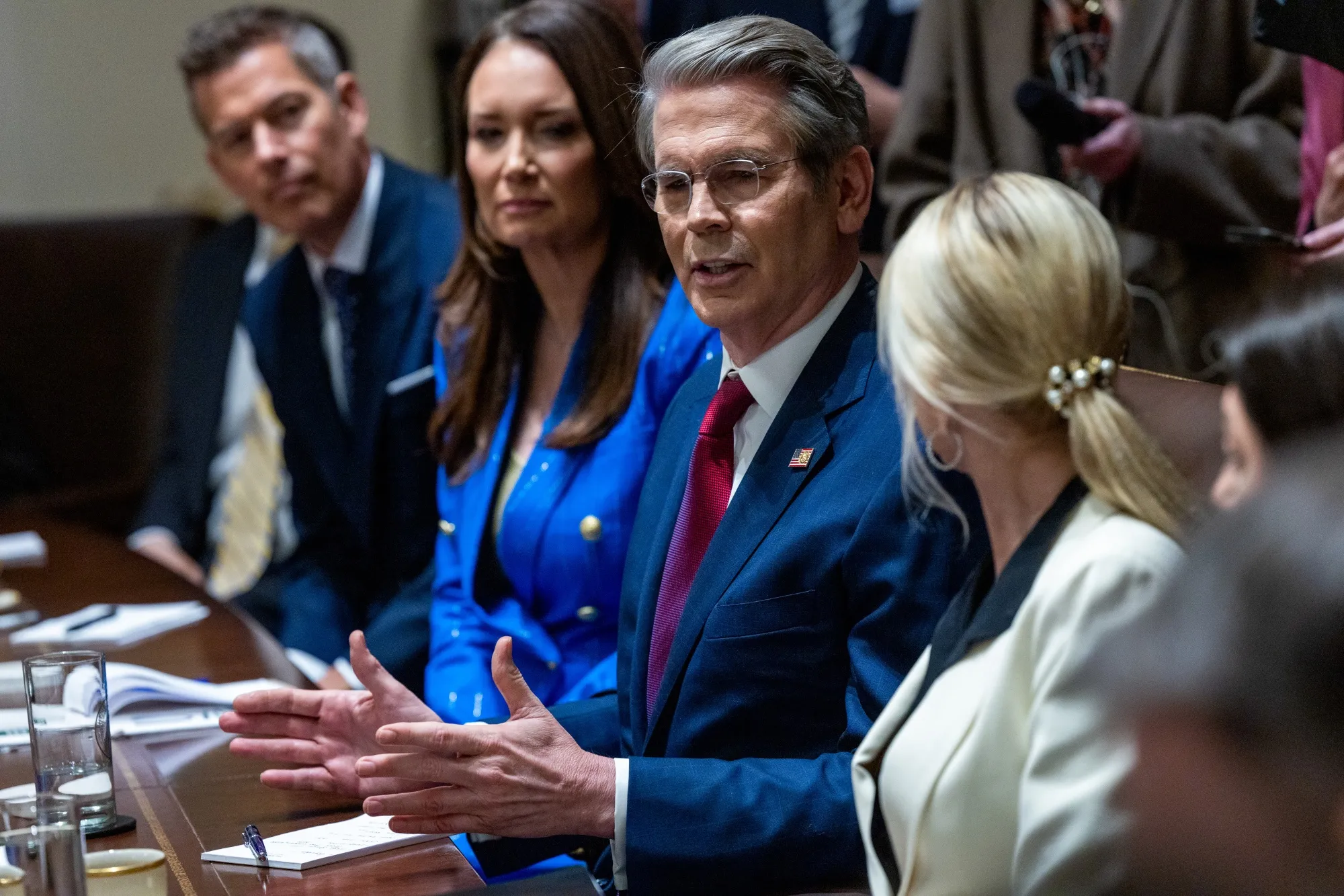 4月10日內閣會議上的斯科特·貝森特。攝影師:肖恩·休/EPA/彭博社"漲二跌一的比例並不糟糕,“貝森特表示,“未來90天內關税問題終將達成高度確定性結果。”