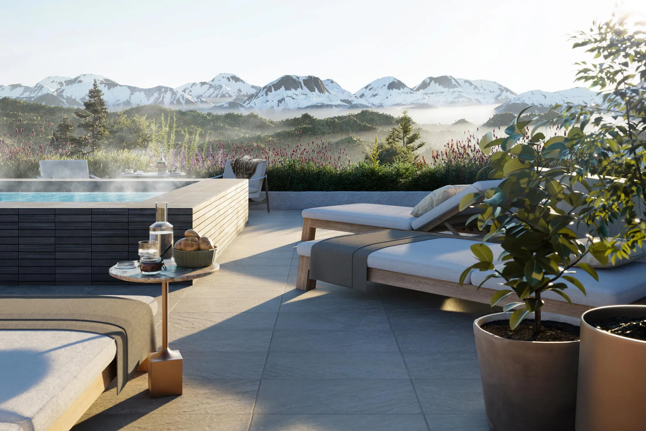 蒙大拿州冰川國家公園附近落葉松屋屋頂温泉泳池的效果圖。來源:落葉松屋### 費爾蒙露易絲湖城堡酒店
