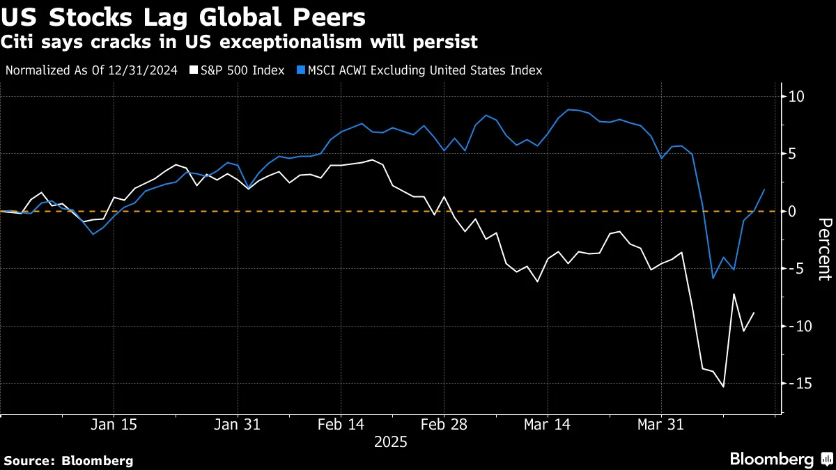 隨着對特朗普總統貿易政策結果的不確定性加劇了經濟衰退的陰影,花旗策略師加入了包括美銀和貝萊德在內的華爾街重量級機構行列,這些機構都對美股失去了熱情。策略師指出,投資者仍超配美股,這為更大程度的資產多元化提供了空間。