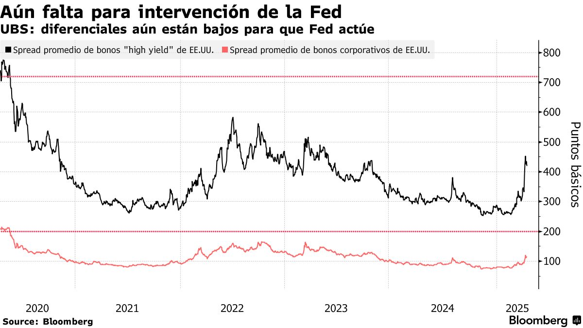 瑞銀採用紐約聯儲的信貸市場壓力指數來模擬公司債券利差需要擴大到何種程度才會觸發美聯儲干預。這一門檻值約為投資級債券200個基點,高收益或垃圾債券720個基點。