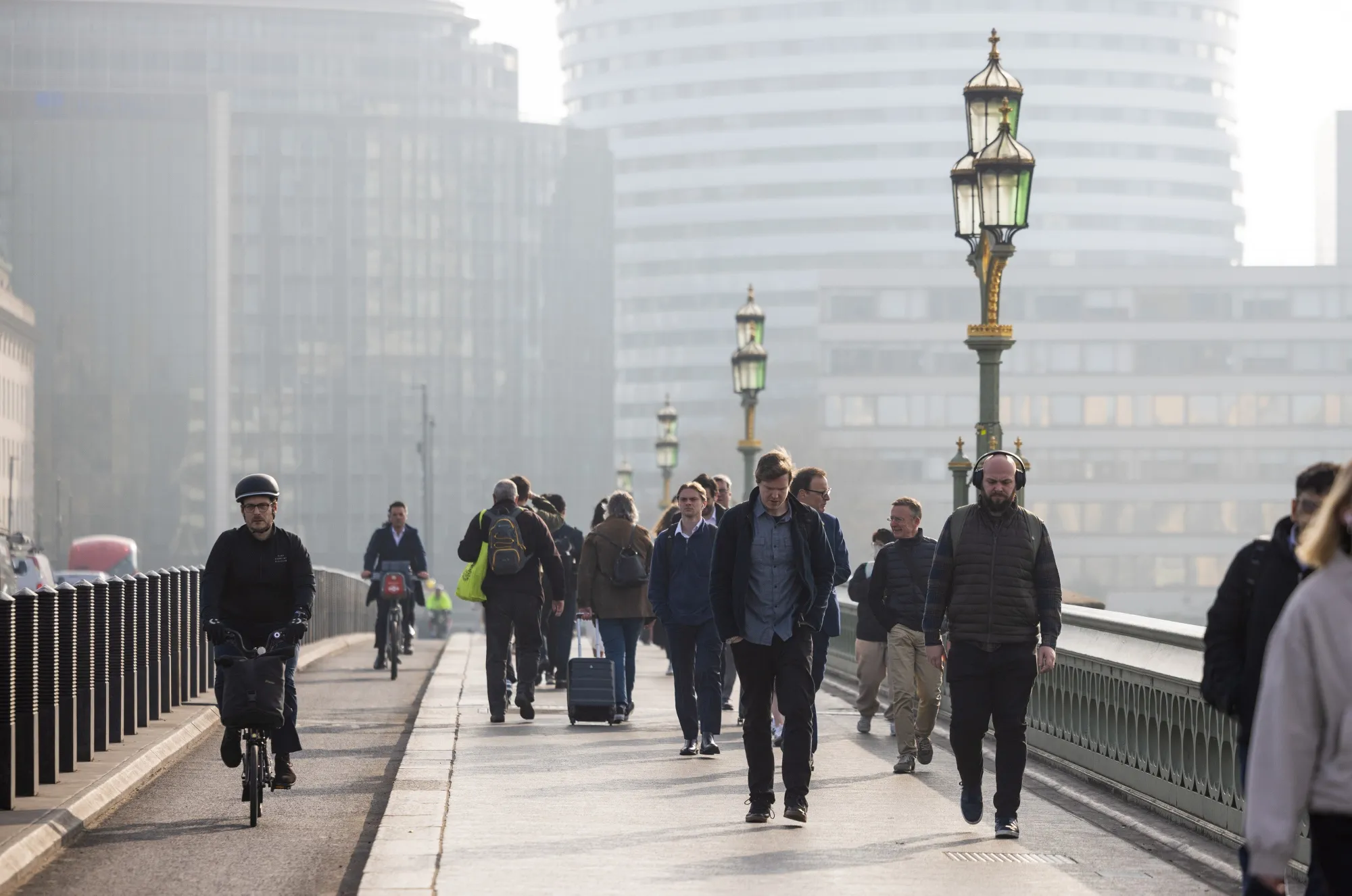 通勤者穿過倫敦威斯敏斯特大橋。攝影師:克里斯·拉特克利夫/彭博社訂閲**《每日經濟》獲取最新資訊與分析。