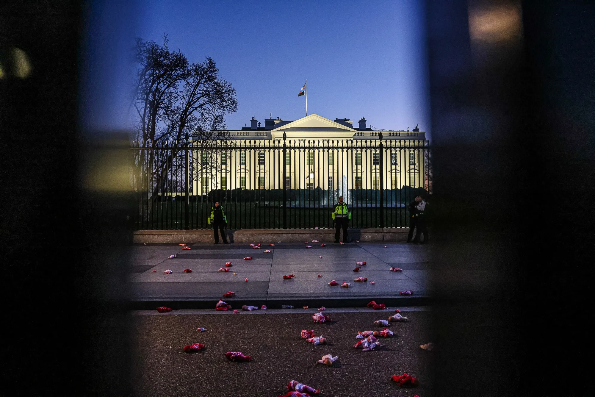 2024年1月13日,在南非呼籲聯合國國際法院命令以色列停止對哈馬斯的戰爭並裁定其軍事行動構成種族滅絕後,警察們在白宮前舉行的華盛頓聲援加沙遊行中執勤。