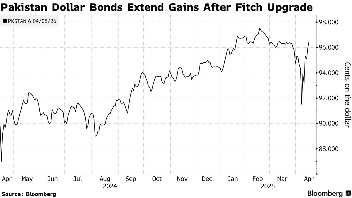 該信用評估機構將巴基斯坦評級從’CCC+‘提升至’B-’,展望穩定。擁有類似評級的其他國家包括安哥拉、薩爾瓦多和伊拉克。巴基斯坦美元債券上漲,其中2026年到期的債券在評級上調後攀升至一個多月來的最高水平。