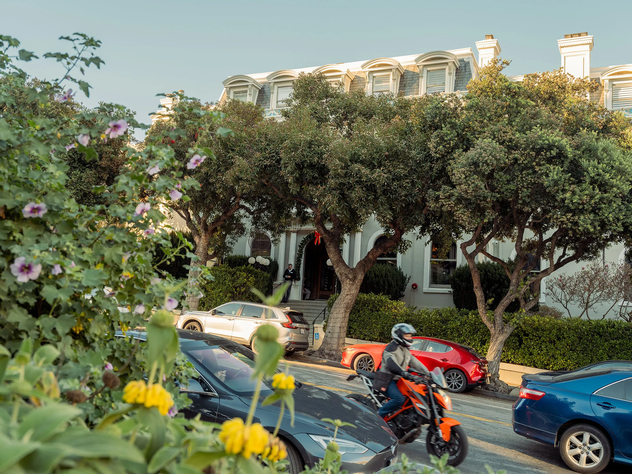 HF0總部位於舊金山阿拉莫廣場公園附近的一棟豪宅內。攝影:Kelsey McClellan(彭博商業週刊)在舊金山阿拉莫廣場公園東北角,有一棟歷史悠久的豪宅,數十人居住於此,終日沉浸在苦行僧般的專注中。當宣告用餐的鑼聲響起,居民們緩步進入餐廳補充能量,隨後返回房間或地下室。這棟以華麗樓梯和深色木飾板聞名的宅邸還設有冷水浸泡浴缸和冥想空間。致幻物質在這裏是被禁止的——除非你把迷你冰箱裏的罐裝綠茶也算上。每個週末,待洗衣物會被迅速收走,然後蓬鬆整齊地送回。有些居民整天穿着毛絨睡袍活動。