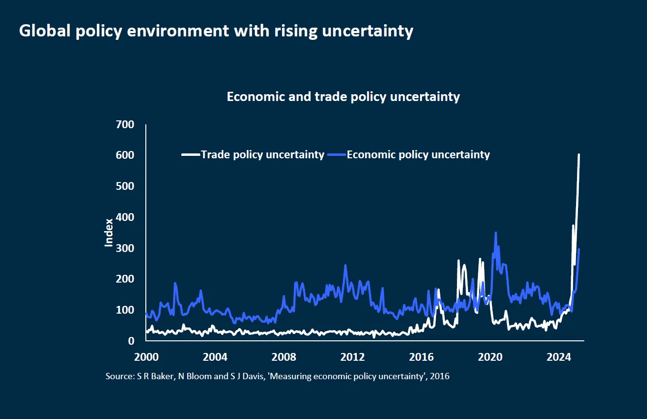 由於貿易緊張局勢升級導致不確定性達到極端水平,南非央行在連續三次降息25個基點後,於上月維持7.5%的關鍵利率不變。
