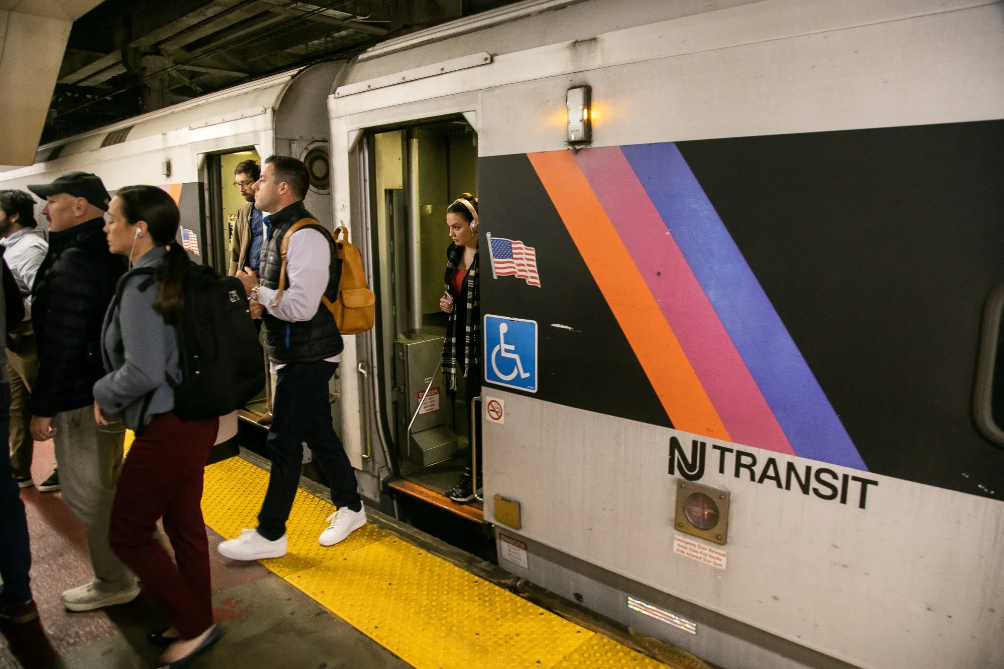 通勤者們在紐約賓夕法尼亞車站走下新澤西捷運列車。