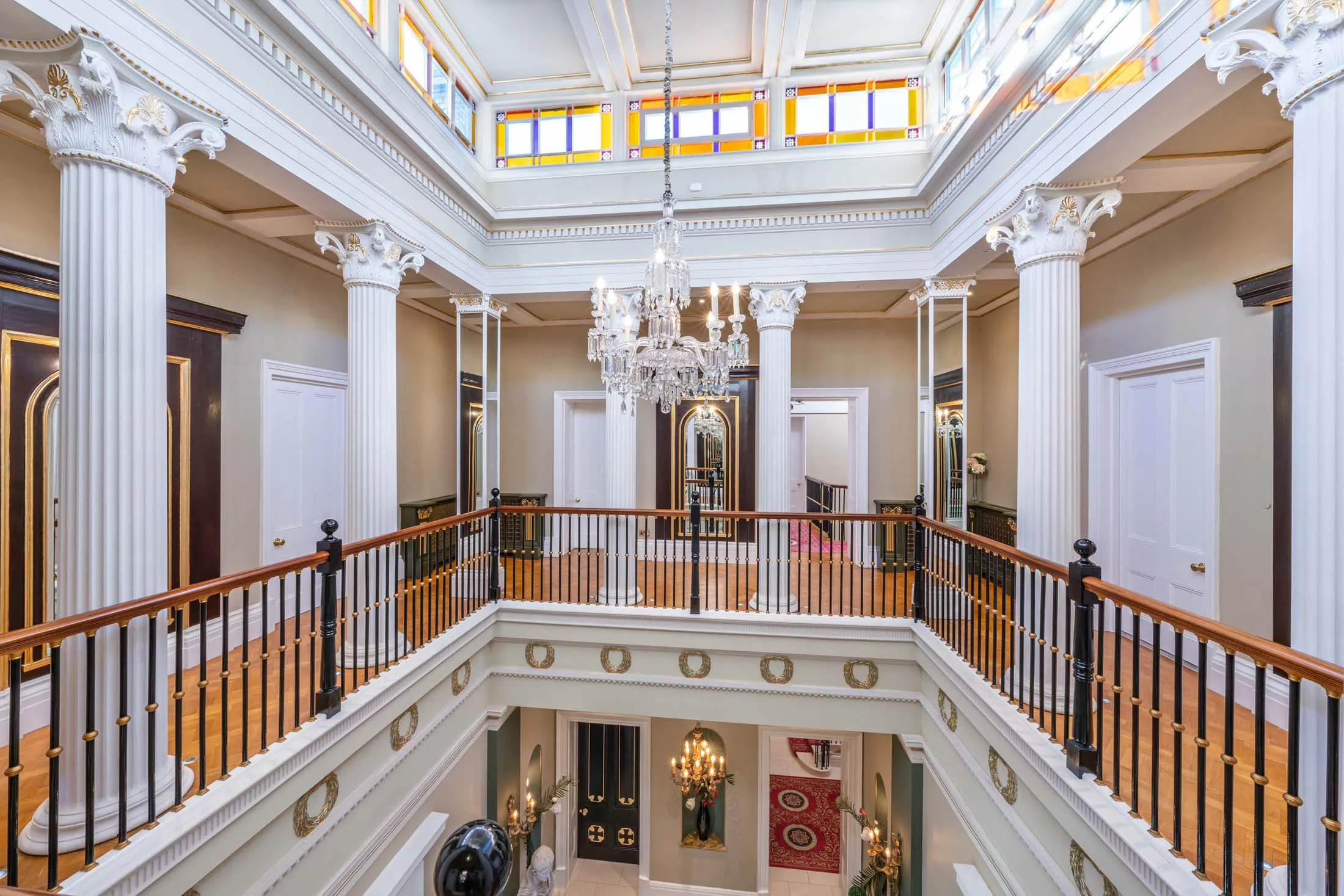 這棟房子有兩層和一個寬敞的地下室,地下室包含有氧和力量健身房、酒窖以及大量儲物空間。入口通向一個宏偉的門廳,一條走廊通往定製的Clive Christian廚房,另一條則通往主要用於娛樂的側翼。