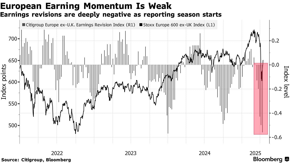 歐洲股市第一季度以美元計算的表現優於標普500指數,但投資者仍在應對特朗普貿易政策的影響。斯托克600指數從3月的歷史高點下跌了17%,但目前已收復了超過三分之一的跌幅。